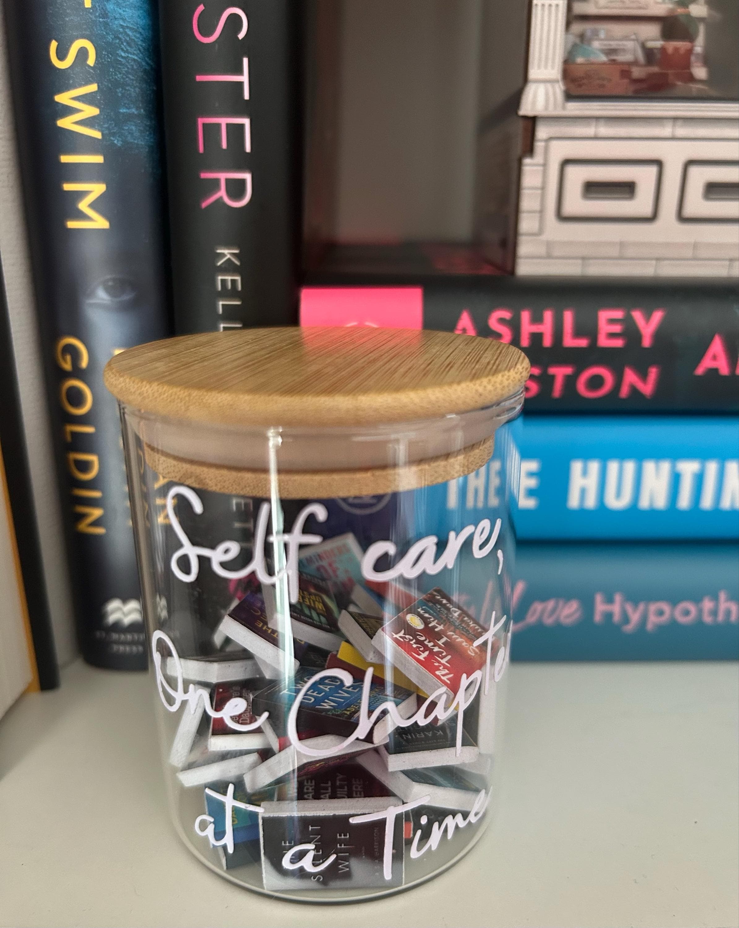 I am so pleased with my purchase. The jar a the tiny books are so perfect and a great addition to my bookshelf!